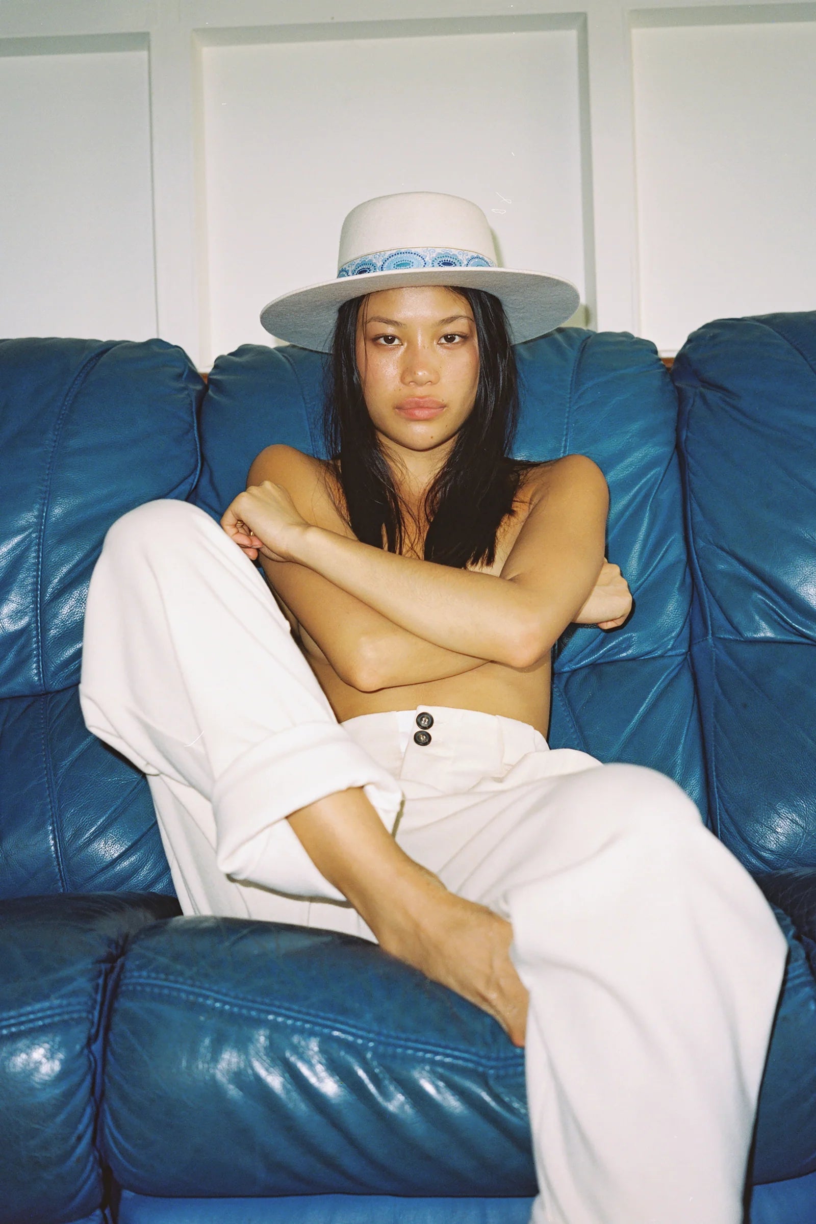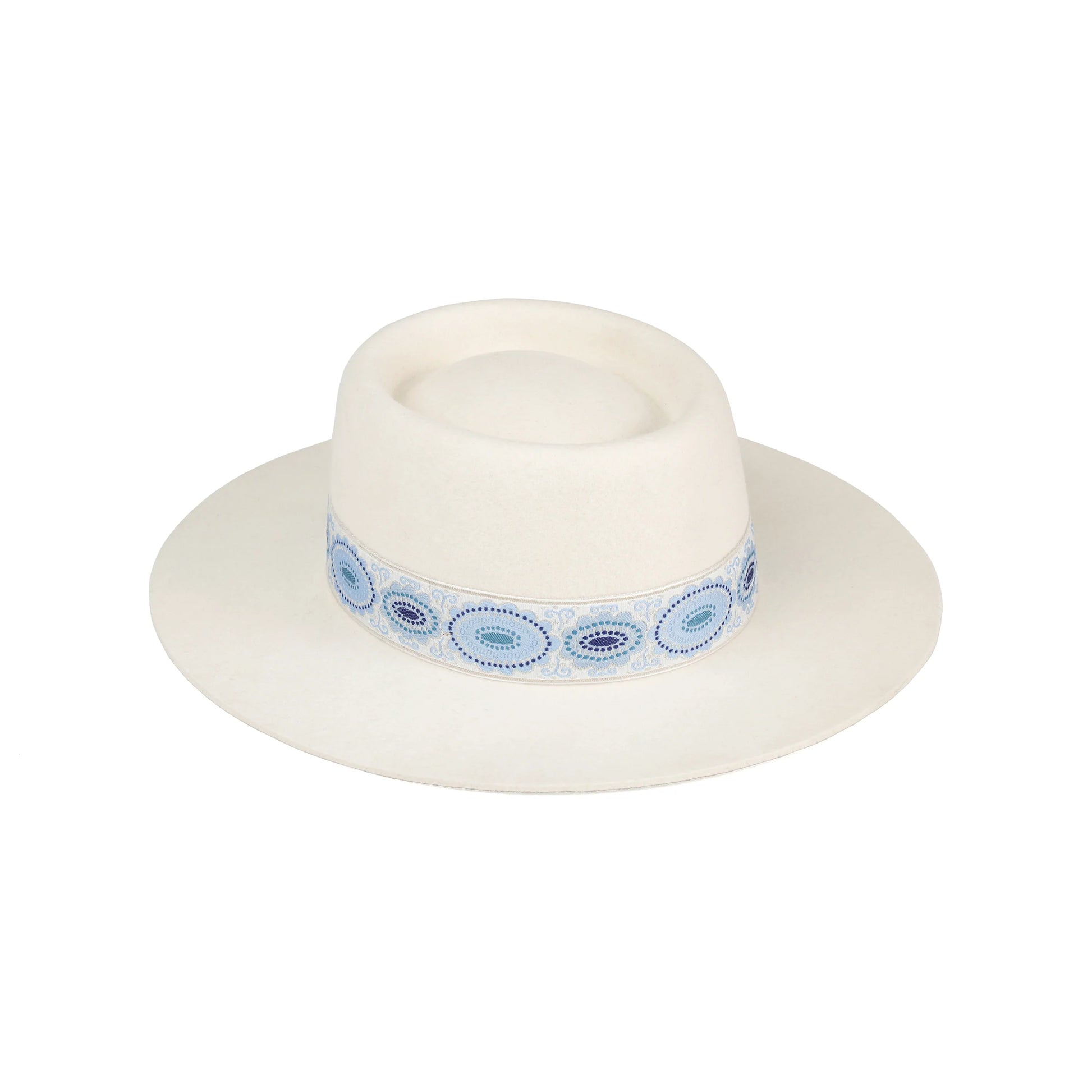 Get lost in dreams of the blue ocean and crashing waves below. The Azure Lolita channels time by the water, sun kissed skin and salty hair. With its oval crown design, this piece is our best fitting boater to date. Wear yours for instant holiday vibes.
