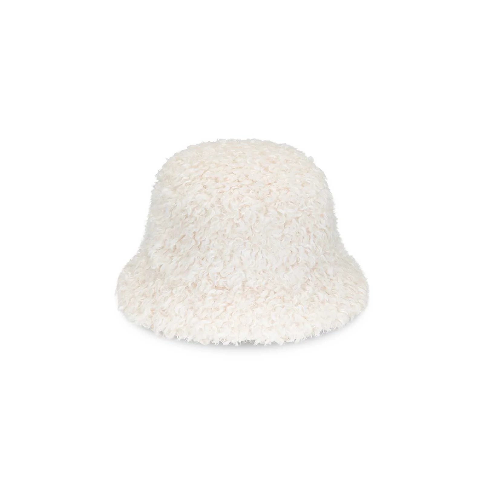 Feel the embrace of a warm hug in this fluffy snow colored faux-fur short brimmed bucket. Featuring a soft hand feel and tussled look, the Fluffy Bucket is your companion for cool days ahead.