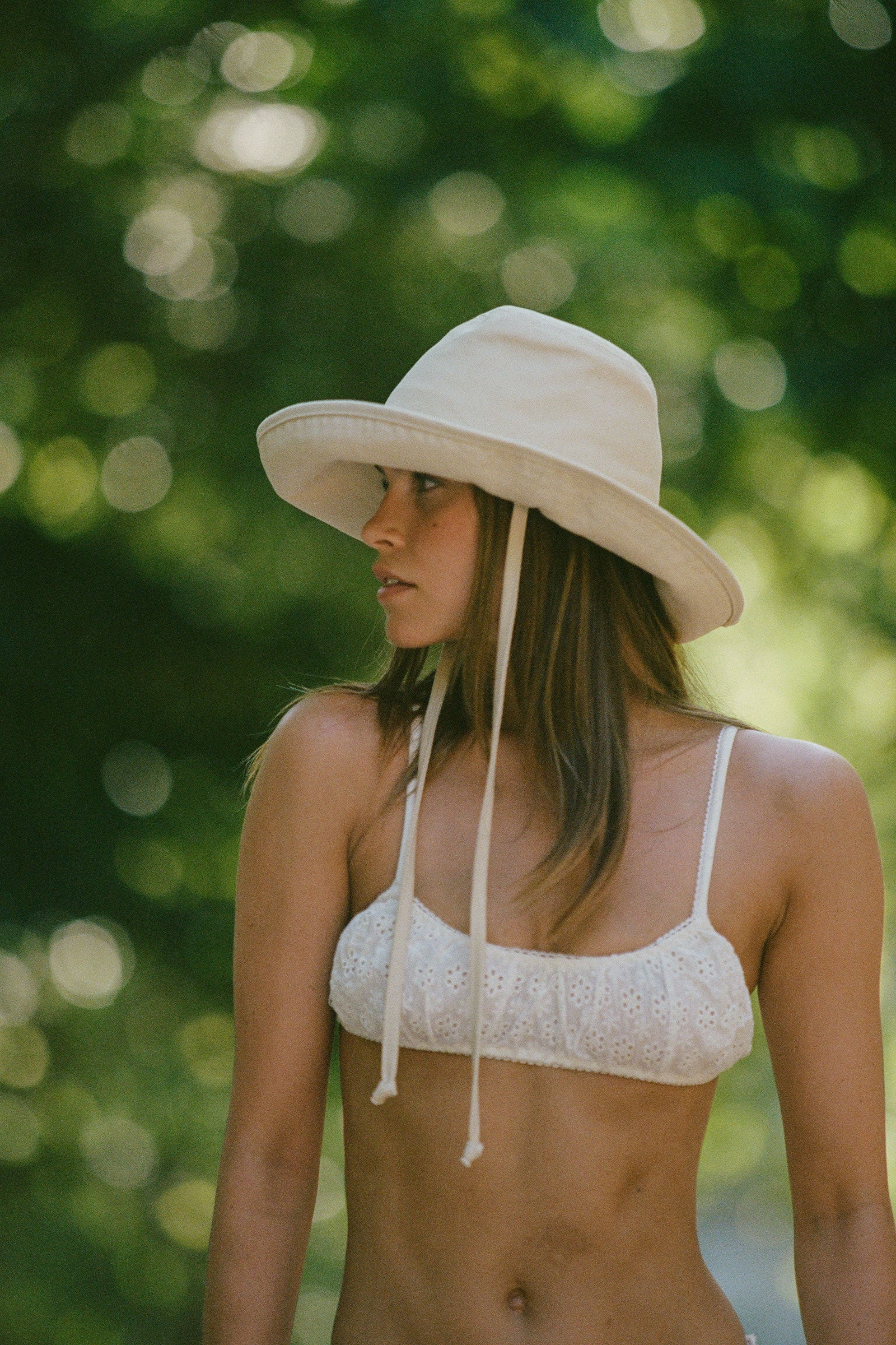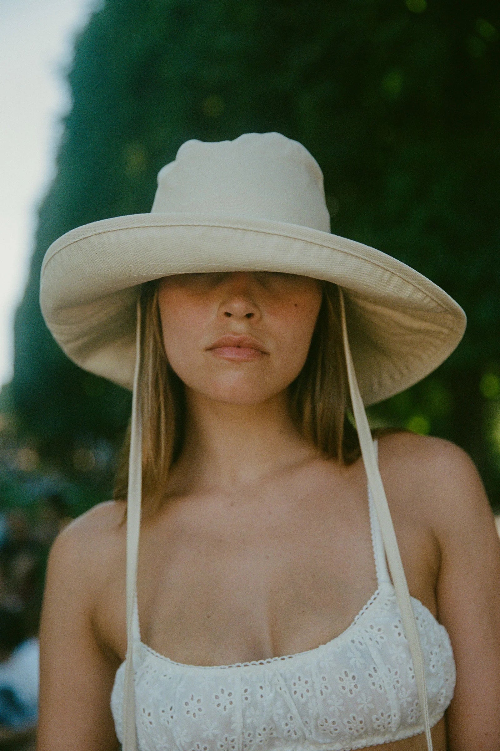 Made from 100% cotton canvas in a neutral beige tone, our new wide-brimmed holiday bucket is finished with a simple and secure necktie, ensuring this hat goes everywhere you do.