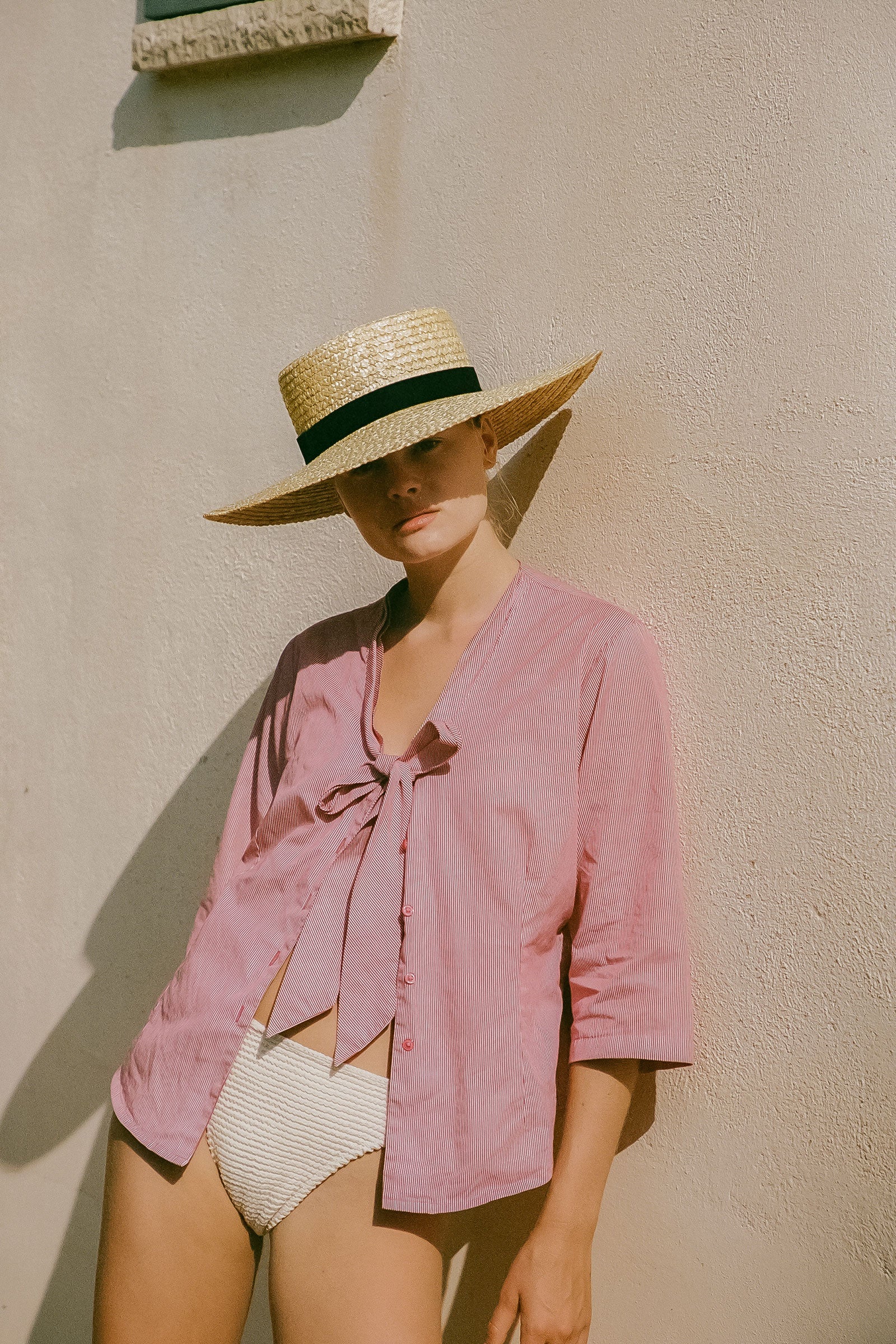 Skilfully hand-braided from glimmering golden wheat straw, the Mira Boater draws its inspiration from the Latin word ‘Mira,’ reflecting the peaks of ocean waves in its intricate pattern. Effortlessly cool, and uniquely sophisticated.