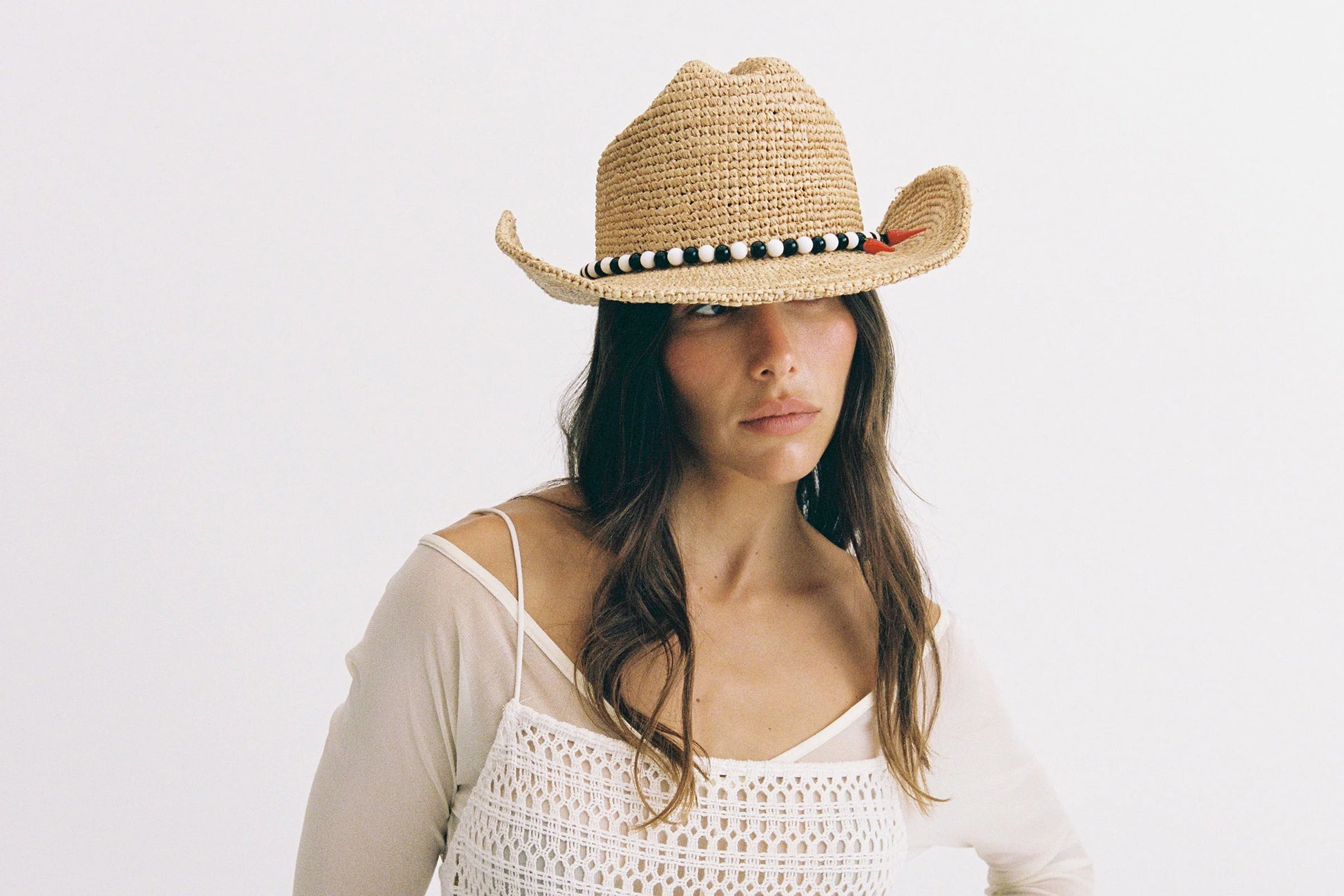 Crafted from tightly woven raffia straw in a classic western silhouette, picture yourself poolside with a chili marg in hand. One for the fun-lover, the premium glass beaded trim with highlight chili feature is a perfect choice for the spicy senoritas!
