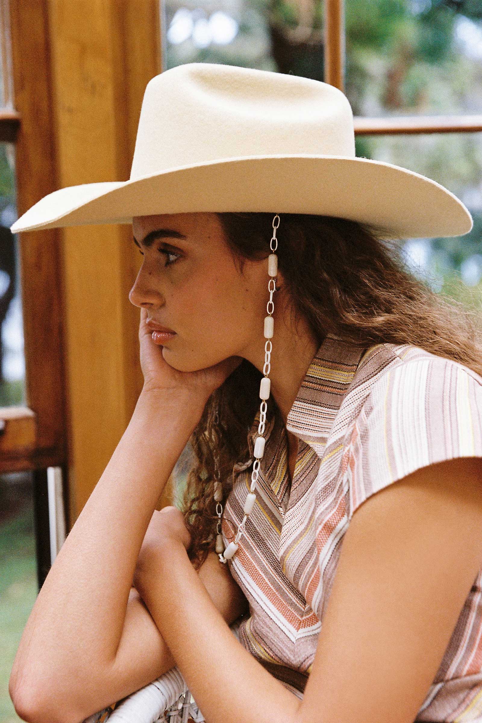 The Ryder Cowboy is crafted from 100% Australian wool in a buttery yellow tone, effortlessly convert the chin chain into a strap for your favorite sunglasses.