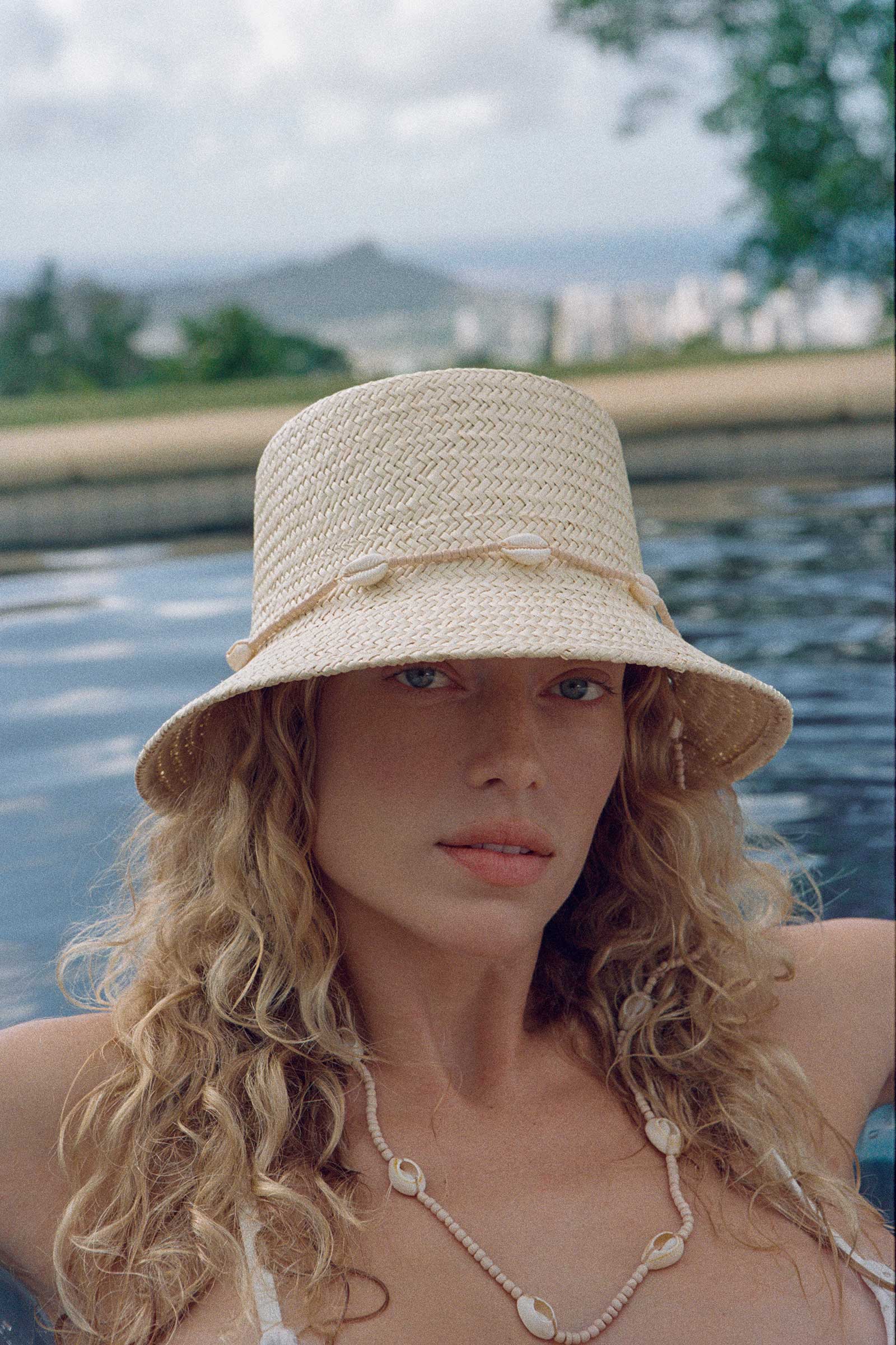 Get ready, your holiday adventure awaits… The destination of your dreams is only minutes away with our paper straw woven bucket hat. Featuring a decorative chin strap and finished with beads and seashells, this is the ultimate seaside accessory.