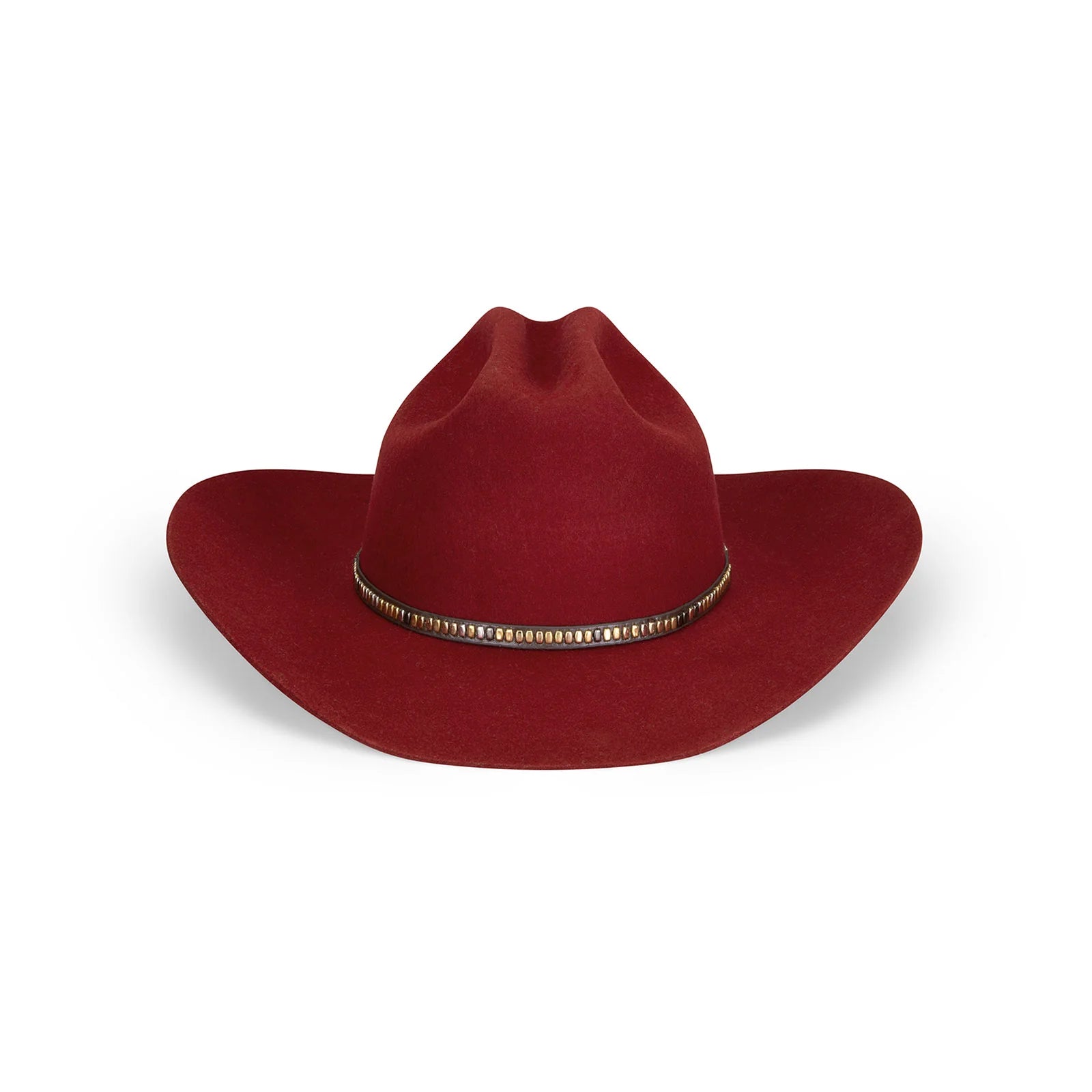 Reach new heights in The Ridge Special – Merlot. The sky’s the limit in our new western Ridge style, an ode to vintage Western films. Crafted from 100% Australian wool in a rich merlot tone, with a leather & stud band detail.
