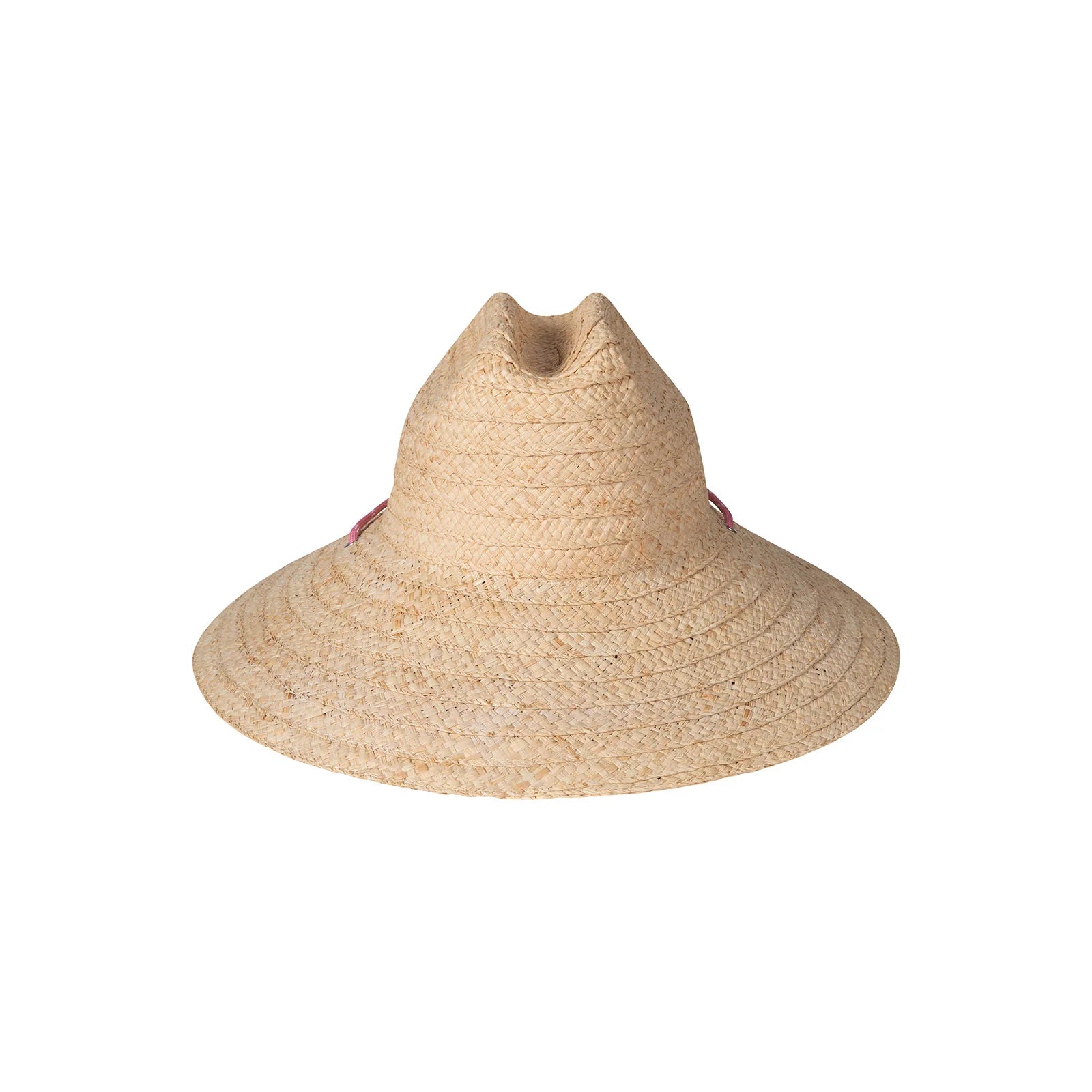 Pool side or beach bound, the Vista in the wide raffia braid will shade your face and neck with its domed down brim. It’s pale pink chin cord and toggle is perfect for those breezy days along the water’s edge.